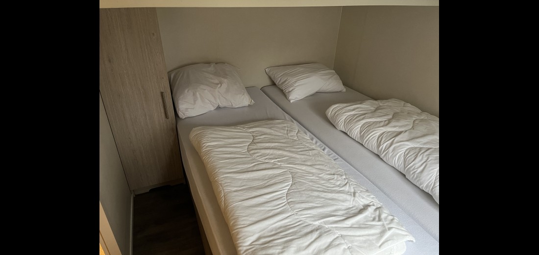 Die Lodges für vier Personen haben ein Schlafzimmer mit einem Doppelbett und ein weiteres Schlafzimmer mit einem Etagenbett. Auf dem Lageplan können Sie die Lage der Weerribben Lodges sehen. Die Nummern 1 bis 5 sind für vier Personen geeignet. Die Nummern 6 bis 10 sind für sechs Personen ausgestattet.